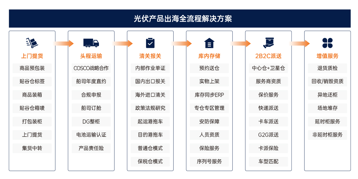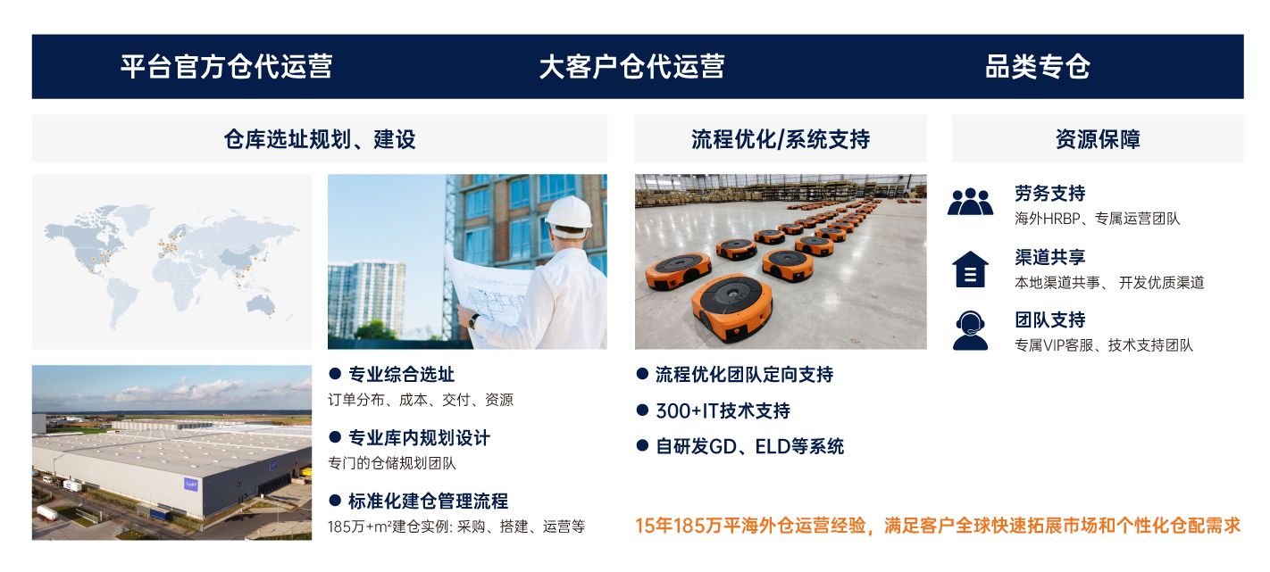 专注于出海客户专业化、行业化、差异化的实际需求,深度联结端到端供应链节点,提供面向行业、紧扣市场、贴近客户的定制仓配解决方案,助力客户快速拓展全球市场。